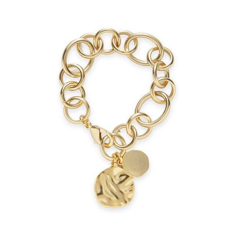 <b>【ランダムチェーンと、ツヤっと輝くコインモチーフが手元を華やかに彩る、ニュアンスのあるブレスレット】</b>