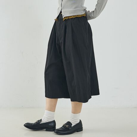 たっぷりのタックギャザーが特徴のバミューダ丈パンツ。