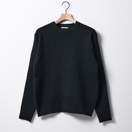 生地に凹凸あるジャガード編みで幾何学柄を表現したニットソー。 主張しすぎない無地見えの柄で安心感を与えます。 一枚でもジャケット、アウターのインナーとしても活躍するデザインです。ジャケットのインナーで使用すれば奥行きのあるジャガード編みがさりげなく主張します。