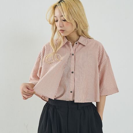 ・ホワイト/ピンクのストライプはワッシャー感があるため、ナチュラル素材の小物やスカーフとも好相性。