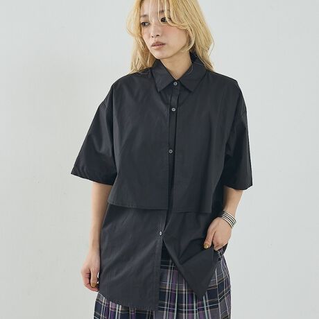 身頃と長めのヨークを重ねたレイヤード風の前立てデザインが特徴で、身頃だけをインして見せる着方もおすすめです。