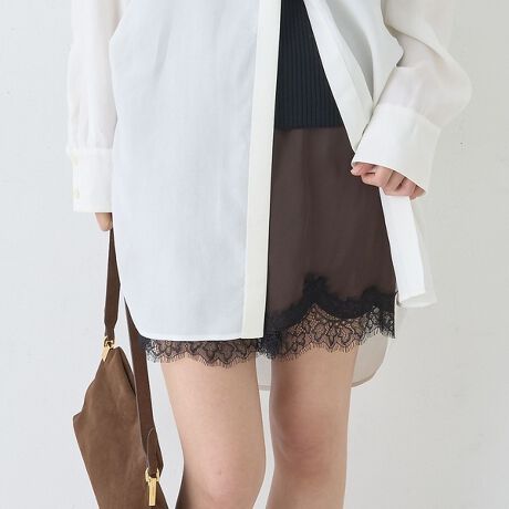 裾にあしらった繊細なレースが