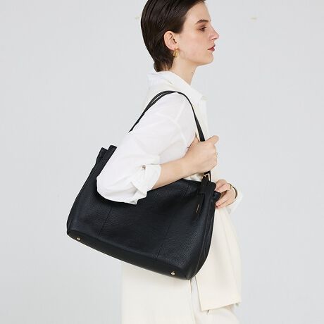 ソフトなシュリンクレザーを使用した、上品で洗練された印象のトートバッグ。