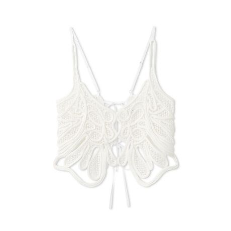 ニットコードを編み込んだレースのようなオリジナル模様がモード感のある、ロープビスチェが届きました。ロープ模様の中にメッシュを加え、着やすくデザインしています。背中側は2本の細リボンで愛らしさをプラス。肩紐ストラップはアジャスタ付きで長さ調節が可能です。アクセサリ感覚でスタイリングに取り入れやすくプラスワンで華やぐアイテムです。ボリューミーなロングデニムスカート(SWFS261247)合わせもおすすめです。