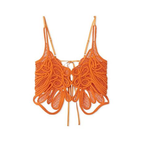 ニットコードを編み込んだレースのようなオリジナル模様がモード感のある、ロープビスチェが届きました。ロープ模様の中にメッシュを加え、着やすくデザインしています。背中側は2本の細リボンで愛らしさをプラス。肩紐ストラップはアジャスタ付きで長さ調節が可能です。アクセサリ感覚でスタイリングに取り入れやすくプラスワンで華やぐアイテムです。ボリューミーなロングデニムスカート(SWFS261247)合わせもおすすめです。