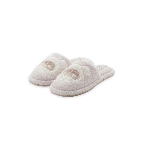 耳付きニットキャップを被って、気持ちよさそうに眠るころもくんをあしらったルームシューズです。