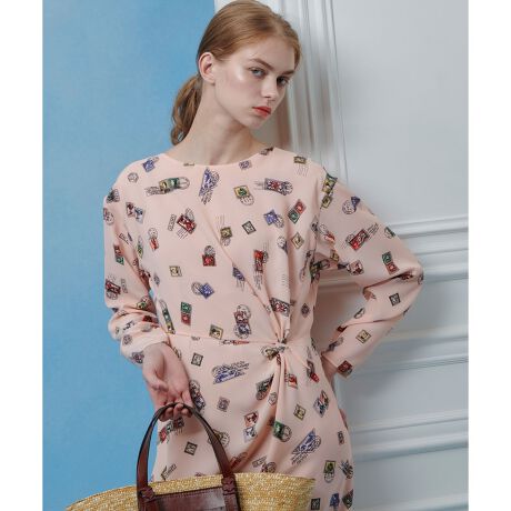 素材のドレープ性を生かしたねじりデザイン。