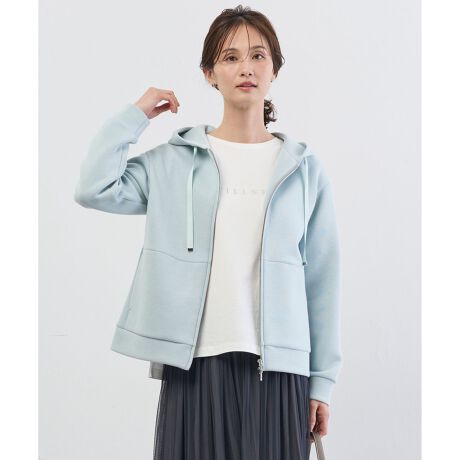 立体的なシルエットを描いた、さっと羽織りやすいパーカー。使い勝手の良い逆開ファスナーで、着こなしのアレンジも自在です。フードに通した配色テープの先にメタルコードエンドを施し、カジュアルなパーカーに大人っぽい洗練された印象をプラスしています。まだ肌寒い時期に、中間アウターとして活躍する、着回し力抜群の1着です。カラーは、ベーシックで合わせやすいライトグレー(#003)、女性らしいやわらかな印象のライトベージュ(#033)、洗練された印象のスモーキーミント(#062)、リラックス感と落ち着きのあるネイビー(#075)の4色展開です。