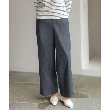 腰まわりをすっきりと見せる、デニムライクなセミワイドパンツ