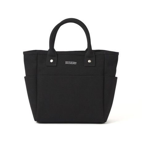 シンプルな見た目ながらサイドや内部にポケットがついており、利便性の高いデザインです。マチが大きいため、見た目以上に収納力があるのもポイント。500mlのペットボトルやA5サイズのノートもしっかり入れられます。