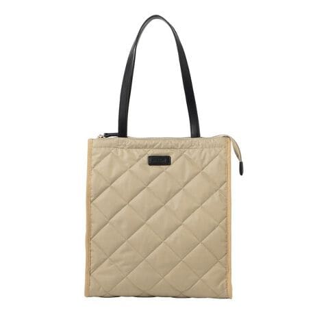 ラージサイズは持ち手が肩からかけられる長さで、A4サイズも余裕をもって収納できるので、通勤バッグとしても活躍。軽量なところもポイントです。