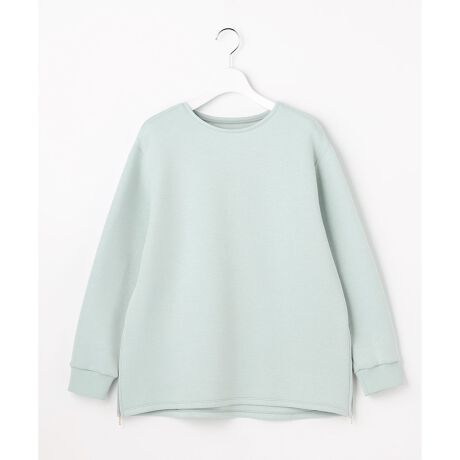 両脇に施されたゴールドのファスナーデザインがポイントのプルオーバーカットソー。ファスナーを開けることでスリット仕様になり、寒さの残る時期には中にシャツやTシャツなどを合わせたレイヤードスタイルをお楽しみいただけます。ヒップが隠れる長めの着丈なので、細身のパンツなどと合わせるだけで、すっきりとしたバランスで着られます。重ね着はもちろん、1枚でもサマになり、長く活躍してくれるアイテムです。カラーは、ベーシックで合わせやすいライトグレー(#003)、女性らしいやわらかな印象のライトベージュ(#033)、洗練された印象のスモーキーミント(#062)、リラックス感と落ち着きのあるネイビー(#075)の4色展開です。