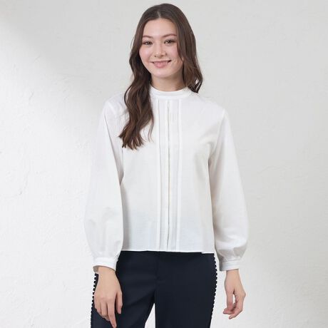 スタンドカラーのトップス。