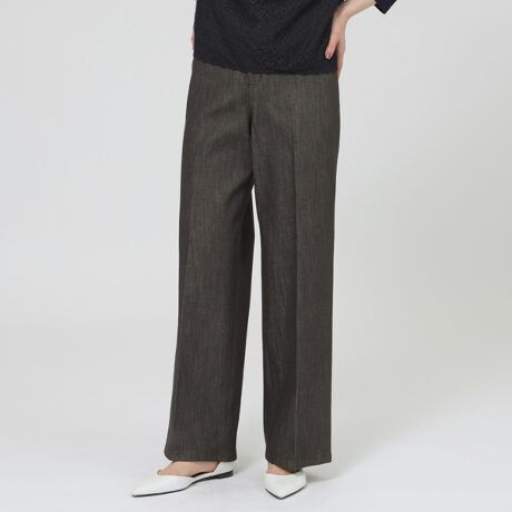 後ろウエスト部分にヨークを入れたハイウエストデザインで、すっきりとしたパンツスタイルをつくりだします。