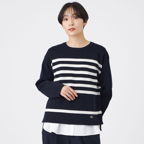 【マシンウォッシャブル】テックスブリッドボーダーニットプルオーバー
