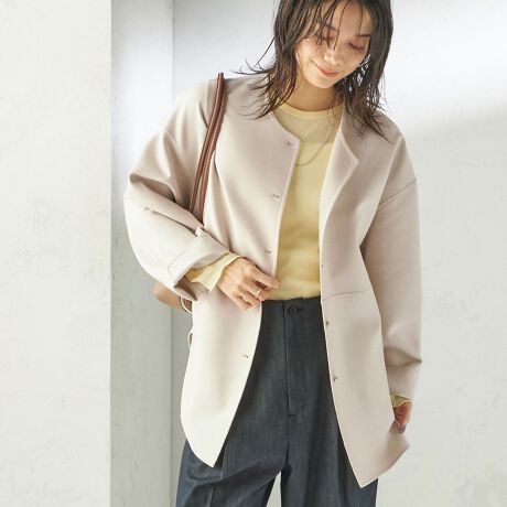 軽さと上品さを兼ね備えたストレッチノーカラーコート