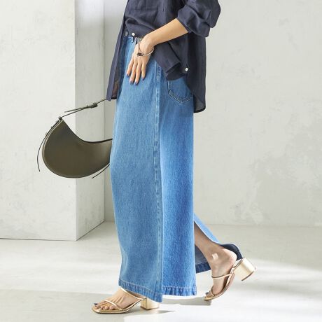 裾にかけてややAラインになった微フレアシルエットに深めのスリットを入れています。