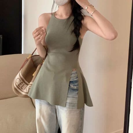 -キャミソールの華奢さとタンクトップの着やすさ両方の良さを持ったシルエットのトップスです。