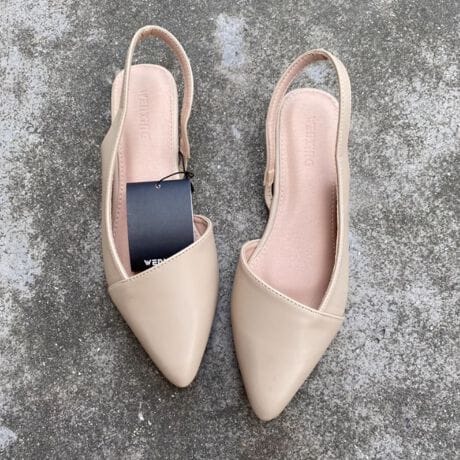 -フラットヒール、バックストラップで楽々疲れにくいです。