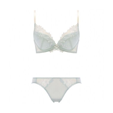 ふんわりと咲き誇る花々の刺繍レースが可憐に映え、華やかな透け感がバストを美しく引き立てます。