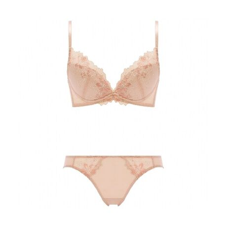 ふんわりと咲き誇る花々の刺繍レースが可憐に映え、華やかな透け感がバストを美しく引き立てます。