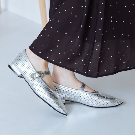 ベルトを外さずサッと着脱OK【卑弥呼26SS】パンチングレザーメリージェーンパンプス/661103