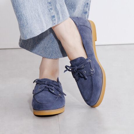 大人カジュアルコーデに欠かせないデッキデザインシューズ。今季らしく柔らかなスエードレザーを使用し、女性らしさをプラスしました。