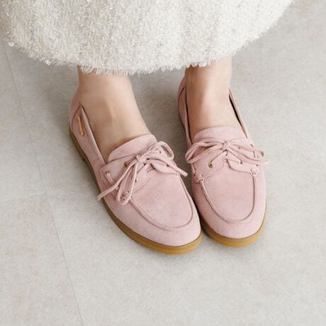 大人カジュアルコーデに欠かせないデッキデザインシューズ。今季らしく柔らかなスエードレザーを使用し、女性らしさをプラスしました。