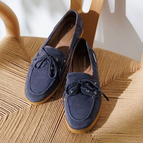大人カジュアルコーデに欠かせないデッキデザインシューズ。今季らしく柔らかなスエードレザーを使用し、女性らしさをプラスしました。