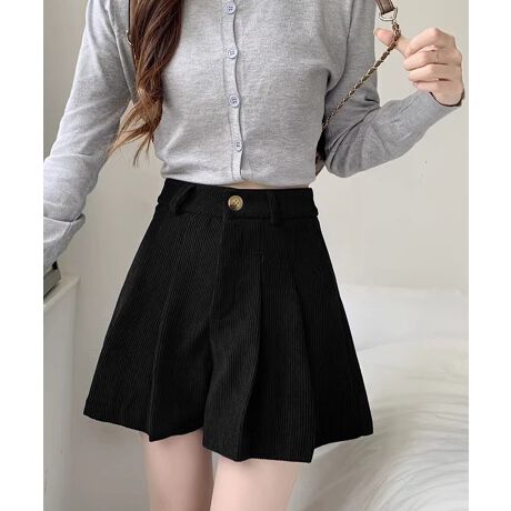 薄手コーデュロイ素材を使用したハイウエストプリーツショートパンツ。