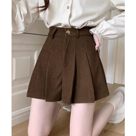 薄手コーデュロイ素材を使用したハイウエストプリーツショートパンツ。
