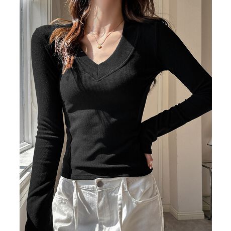 マルイウェブチャネル   /   ミニミニストア   /   トップス   /   Tシャツ・カットソー   /   Vネック 長袖Tシャツ 韓国風カットソー