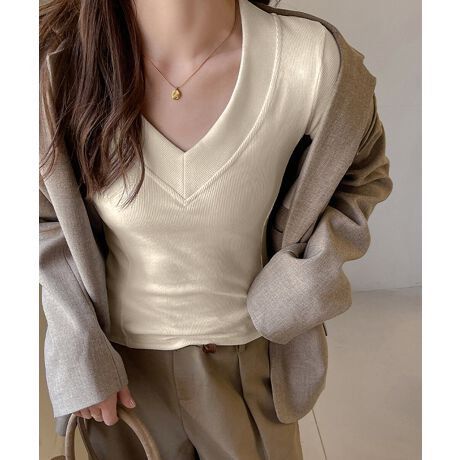Vネック 長袖Tシャツ 韓国風カットソー