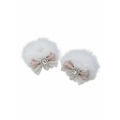 いちごのチャームがアクセントになるファー素材のシュシュ。