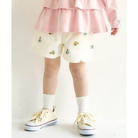 apres les cours(アプレレクール)のパンツ「ハート・フラワー刺繍ショートパンツ」は、ナチュラルなスタイルにさりげなくデザインをプラスしたおしゃれアイテム*