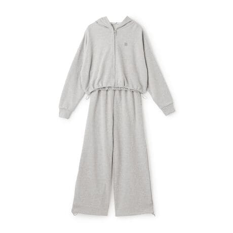 ラインストーンがちりばめられているパーカとロングパンツのセットアップです。どちらも裾がドロスト仕様になっており、シルエットの変化を楽しめます。カジュアルかつ上品な雰囲気で、幅広いシーンに重宝する一着。それぞれ単品でも着用でき、お手持ちのアイテムとも好相性です。ボトムスの両側にポケットつき。【おすすめの着用時期は春夏シーズン】