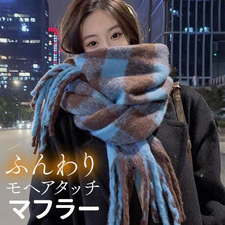 モヘアタッチチェックボリュームマフラー