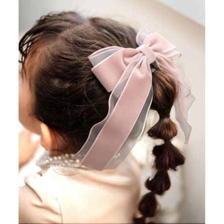 ふんわり軽やかな透け感のあるオーガンジーと、 しっとりとした光沢が魅力の高級ベロアを贅沢に重ねた きれいめリボンの「グレース リボン ヘアゴム」。 エレガントなリボンが幾重にも重なることで、 奥行きのある上品な表情を演出します。 大きめリボンながらも、 落ち着いたブラック、アイボリー、ピンクのカラー展開で、 お子様から大人の方まで幅広い世代にマッチ。 発表会や入学式、卒業式などのフォーマルなシーンはもちろん、 いつものお出かけスタイルにプラスするだけで、 ぐっと華やかで洗練された印象に。 ヘアゴム仕様で着脱も簡単、 忙しい朝でもサッと可愛くアレンジが完成します。 姉妹でお揃いや、色違いで楽しむのもおすすめです。 日常にgrace(優雅さ)を添える、 とっておきのヘアアクセサリーをぜひお迎えください♪