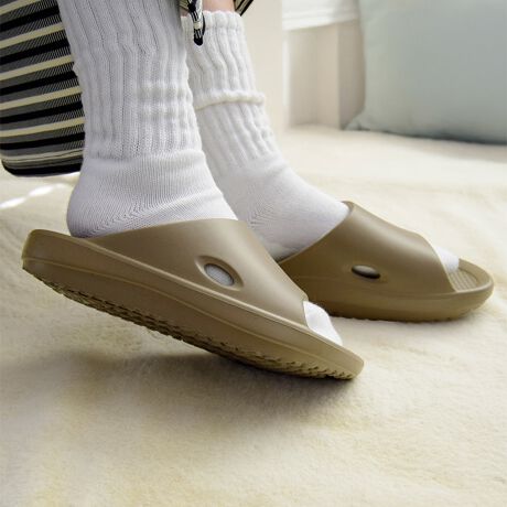 夏にさらっと履きたいスライドサンダルは柔らかさと弾力性を兼ね備えた軽やかな履き心地。