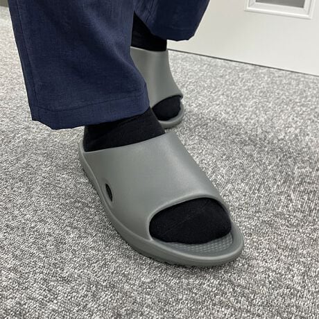 夏にさらっと履きたいスライドサンダルは柔らかさと弾力性を兼ね備えた軽やかな履き心地。