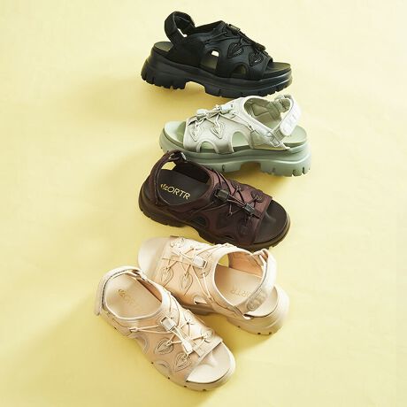 スポーティーなデザインをタウンユースに落とし込んだ厚底サンダルは、