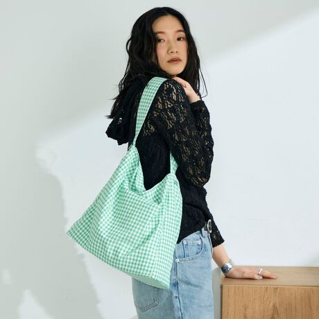 ・ストライプ&ギンガムチェックの柄が目を惹くワンショルダーバッグ