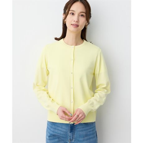 [型番:352684]淡いカラーでシーズンムードを高めるカーディガンどんなスタイリングにも取り入れやすいクルーネックが魅力的なカーディガン。春らしい淡いカラーバリエーションでシーズンムードを高めてくれます。生地端のリブ切り替えが心地よいフィット感を演出。デイリーやオフィスカジュアルなど、オンオフ問わず活躍するアイテムです。