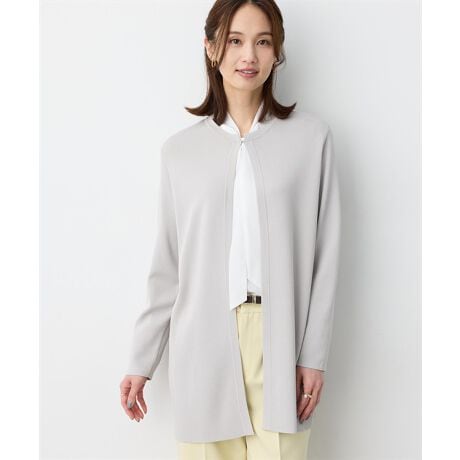 [型番:352686]ロング丈のシルエットが、大人の上品さを演出するコーディガン長さのあるデザインですっきりとした装いを楽しめるコーディガン。サイドはリブ切り替えを施しており、動きやすい着心地を演出します。背面にあしらわれたメタルパーツがワンポイントに。スラックススタイルに合わせたきれいめなスタイリングがおすすめです。