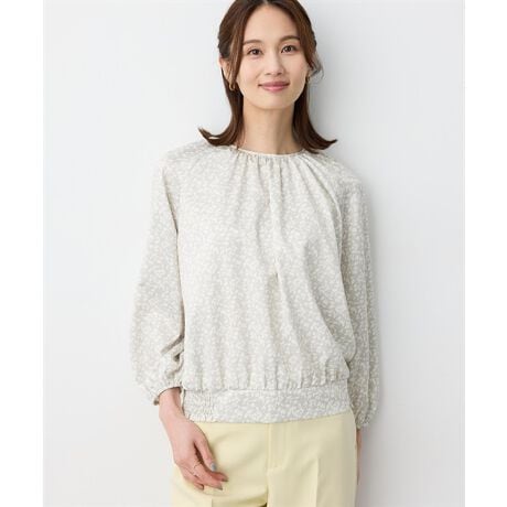 細やかな花柄プリントがエレガントさを引き立たせるブラウス。