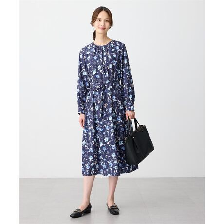 [型番:353840]1枚でエレガントな着こなしを楽しめるワンピース繊細な花柄プリントが上品な女性らしさを引き立たせるワンピース。ウエストにはリボンを施しており、結ぶことでスタイルアップ効果をもたらします。なだらかに広がるフレアシルエットが自然な揺らめきを演出。1枚で着用するのはもちろん、カーディガンやジャケットとのレイヤードも楽しめます。