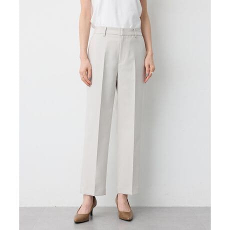 [型番:354134]程よい厚みのある二重織素材を使用した、ストレッチテーパードパンツ。すっきりとしたシルエットながら、伸びのある素材で快適な穿き心地を叶えます。ウエストは後ろゴム仕様で、きちんと感とリラックス感を両立。同系色トップスでまとめて、洗練されたワントーンコーデも楽しめます。