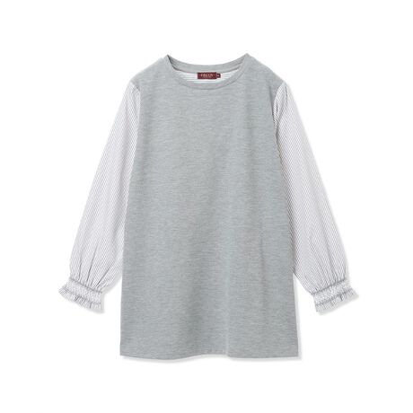 [型番:491268]1枚でレイヤード風の着こなしを楽しめるドッキングチュニックスリーブの異素材切り替えでレイヤード風の装いを楽しめるドッキングチュニック。袖口にはシャーリングを施しており、心地よいフィット感を演出します。身頃部分は凹凸のあるサーマル生地で仕立てられているのもポイント。パンツと合わせたカジュアルなコーディネートがおすすめです。