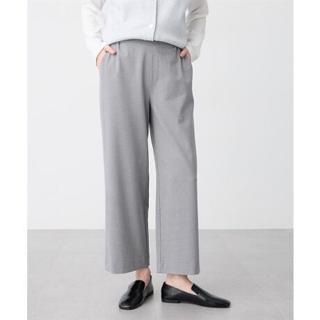 [型番:524319]ラクなのにきちんと見えするワイドパンツウエストゴム仕様でストレスフリーな穿き心地の、すご楽シリーズのワイドパンツ。落ち感のある素材が広がりを抑え、体のラインを拾いにくいのもポイント。Tシャツでカジュアルに、ブラウス合わせできれいめにも活躍する万能アイテムです。