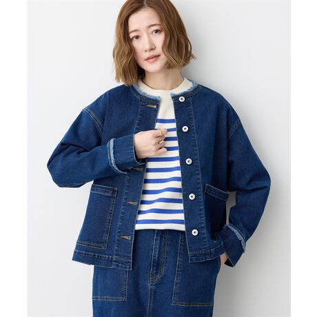マルイウェブチャネル   /   プチ オンフルール   /   アウター・ジャケット・コート   /   デニムジャケット・Gジャン   /   ノーカラーストレッチデニムジャケット【はっ水】